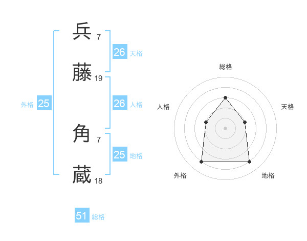 兵藤 角蔵さんを姓名の画数から五運を鑑定