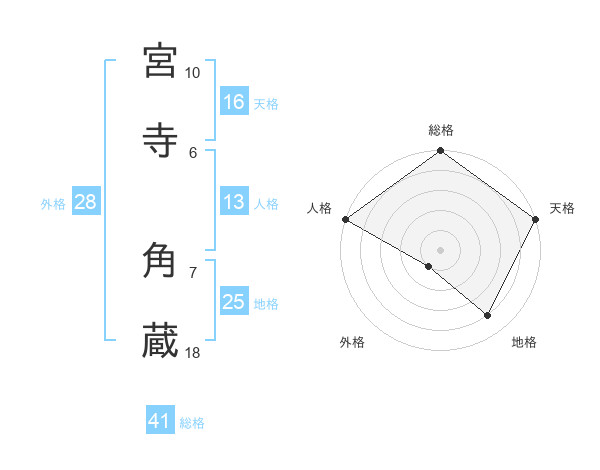 宮寺 角蔵さんの地格は25画の4点!