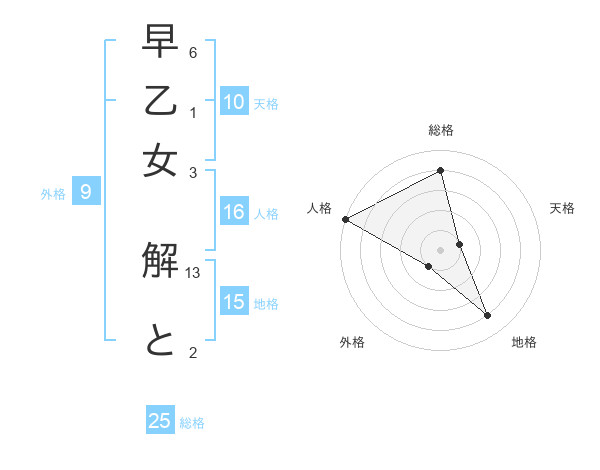 早乙女 解とさんを姓名の画数から五運を鑑定