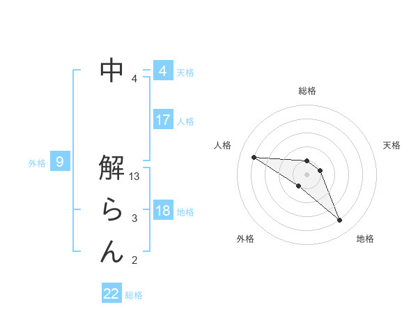 中 解らんさんの総格は22画の1点!