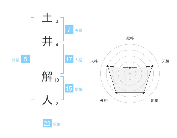 土井 解人さんの総格は22画の1点