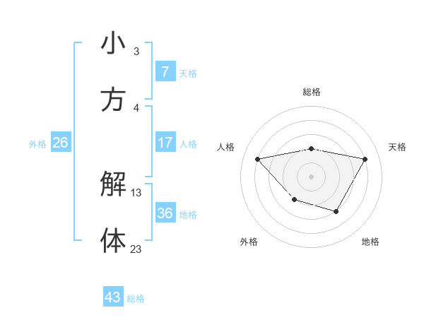 小方 解体さんの総格は43画の2点!