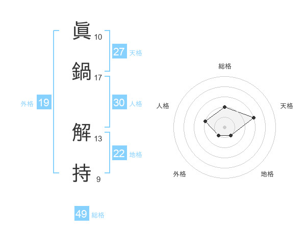 眞鍋 解持さんの総格は49画の2点!