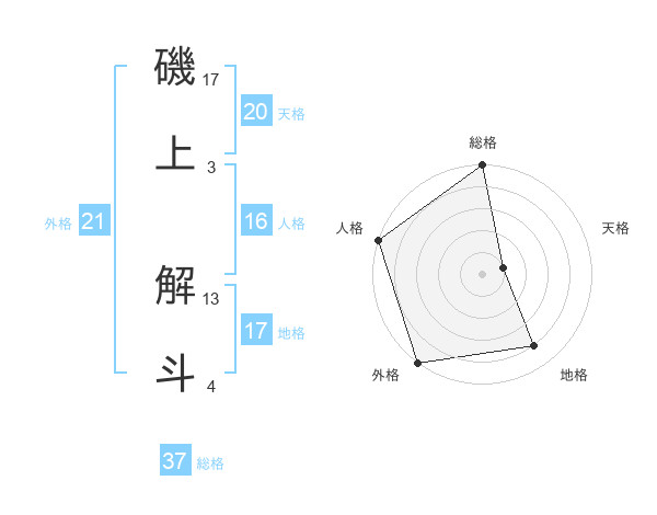 磯上 解斗さんを姓名の画数から五運を鑑定