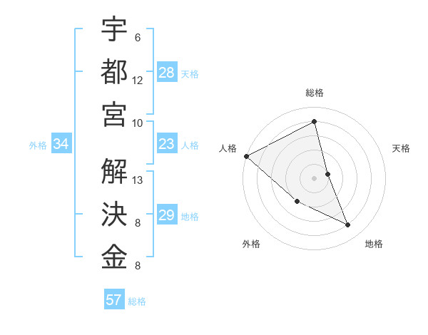宇都宮 解決金さんを姓名の画数から五運を鑑定