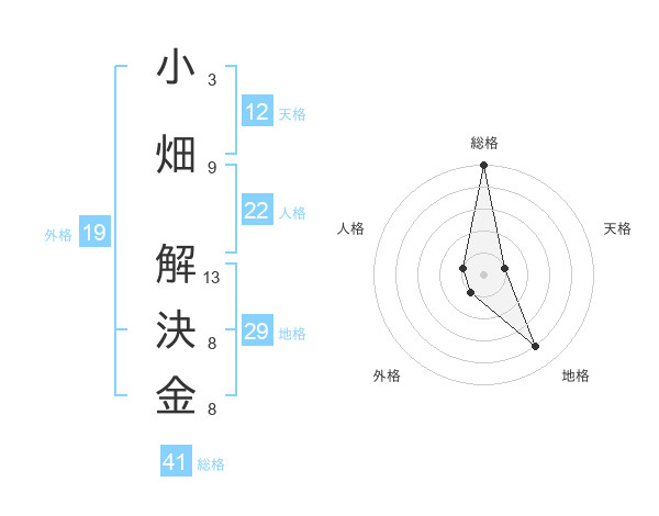小畑 解決金さんの地格は29画の4点!