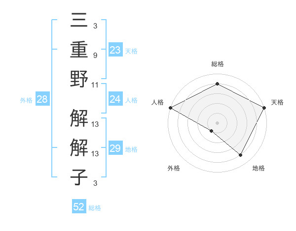 三重野 解解子さんを姓名の画数から五運を鑑定
