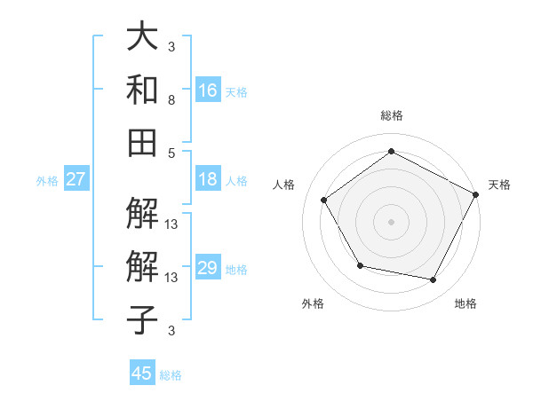 大和田 解解子さんを姓名の画数から五運を鑑定
