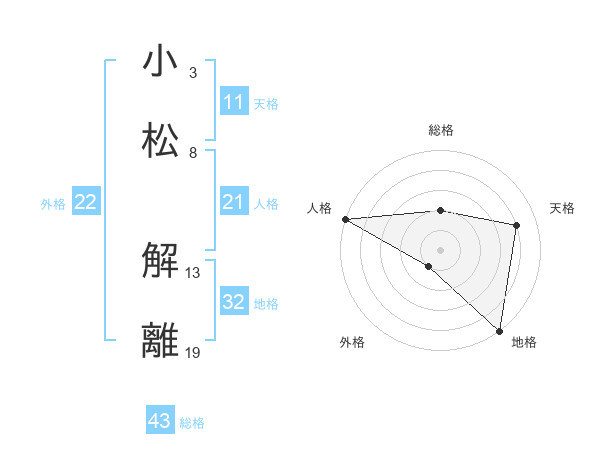 小松 解離さんを姓名の画数から五運を鑑定
