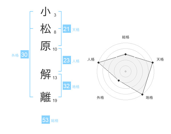 小松原 解離さんの天格は21画の5点!