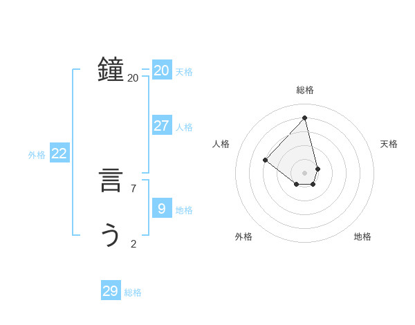 鐘 言うさんの総格は29画の4点!