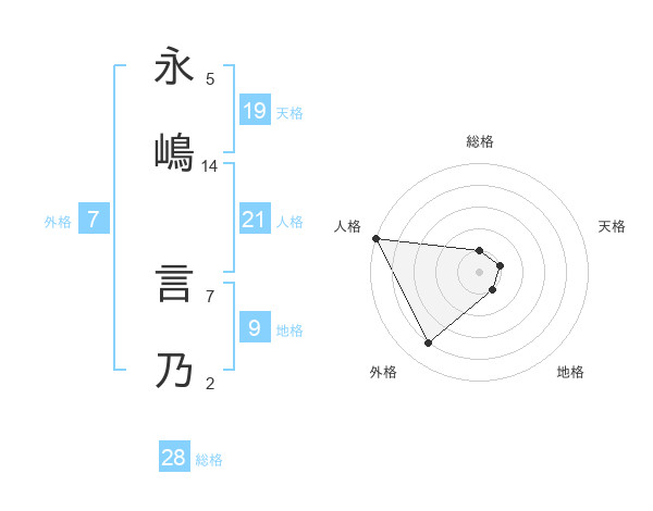 永嶋 言乃さんを姓名の画数から五運を鑑定