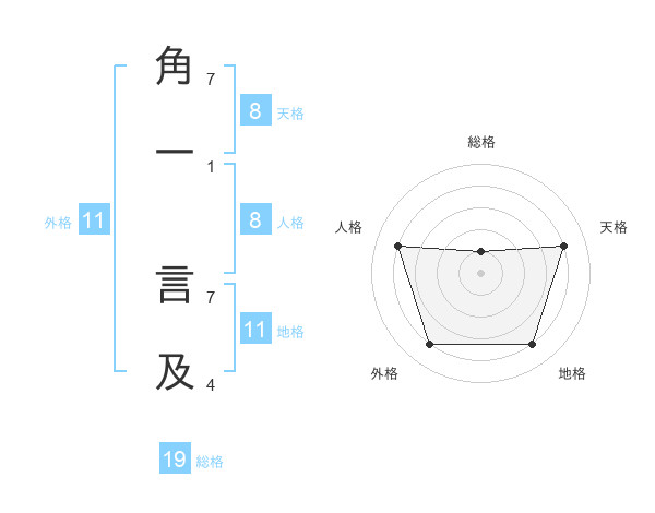 角一 言及さんの天格は8画の4点!