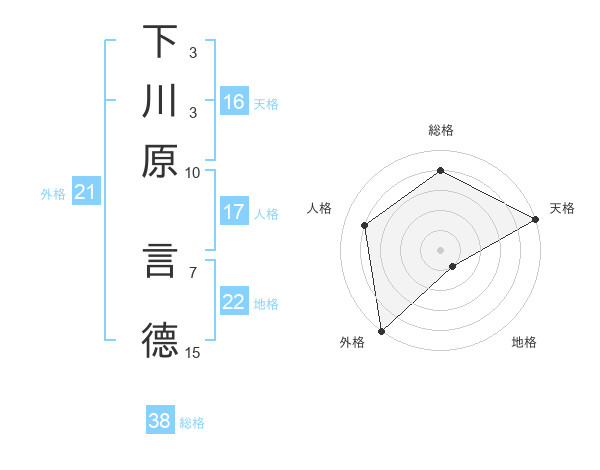 下川原 言德さんの総格は38画の4点!