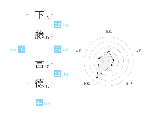 下藤 言德さんの天格は22画の1点!