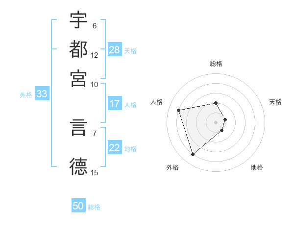 宇都宮 言德さんの総格は50画の2点!