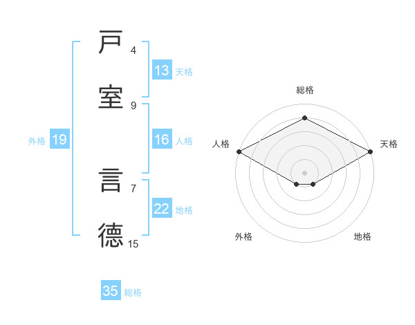 戸室 言德さんの総格は35画の4点!