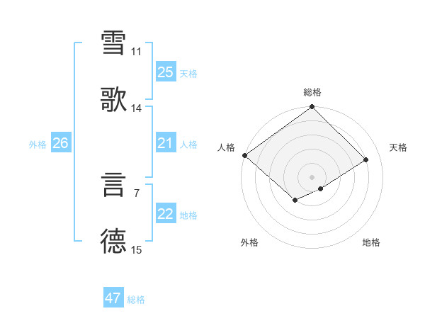 雪歌 言德さんを姓名の画数から五運を鑑定