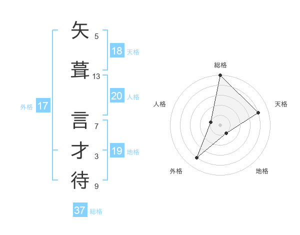 矢葺 言才待さんの総格は37画の5点!