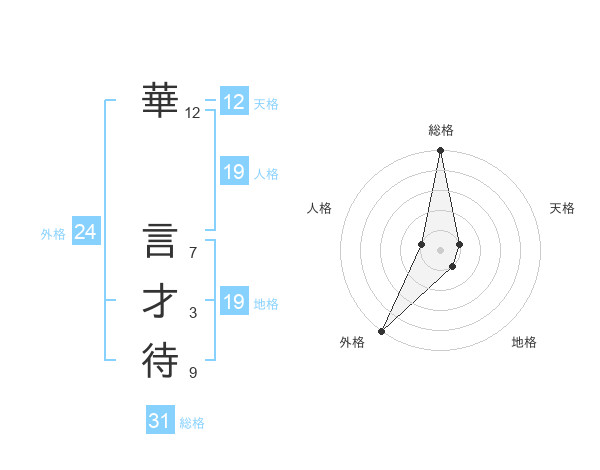 華 言才待さんの総格は31画の5点!