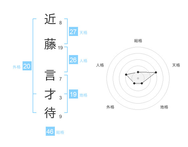 近藤 言才待さんを姓名の画数から五運を鑑定