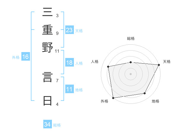 三重野 言日さんの外格は16画の5点!