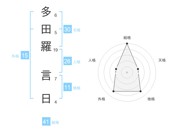 多田羅 言日さんの総格は41画の5点!