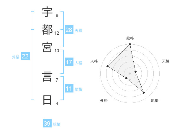 宇都宮 言日さんを姓名の画数から五運を鑑定