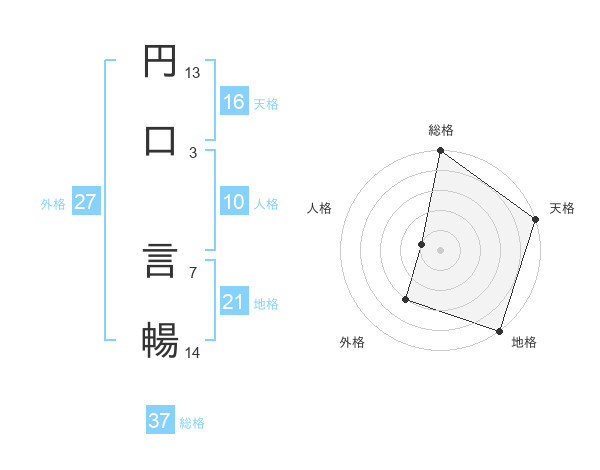 円口 言暢さんの総格は37画の5点!