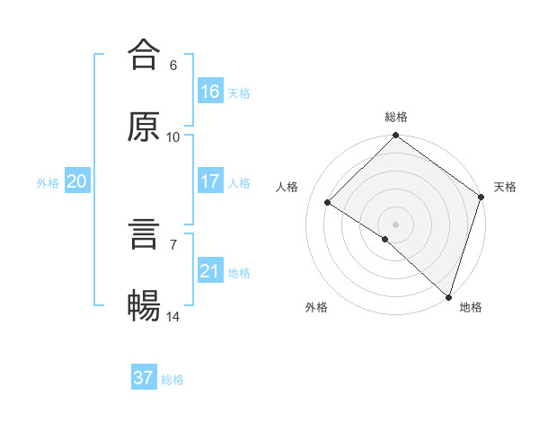 合原 言暢さんを姓名の画数から五運を鑑定