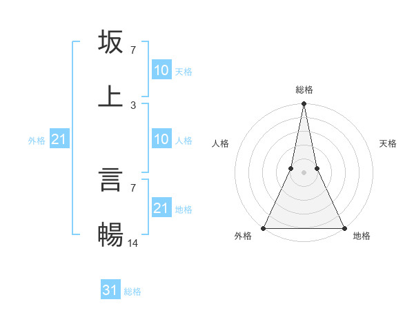 坂上 言暢さんの総格は31画の5点!