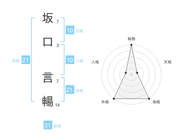 坂口 言暢さんを姓名の画数から五運を鑑定
