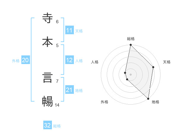 寺本 言暢さんの総格は32画の5点!