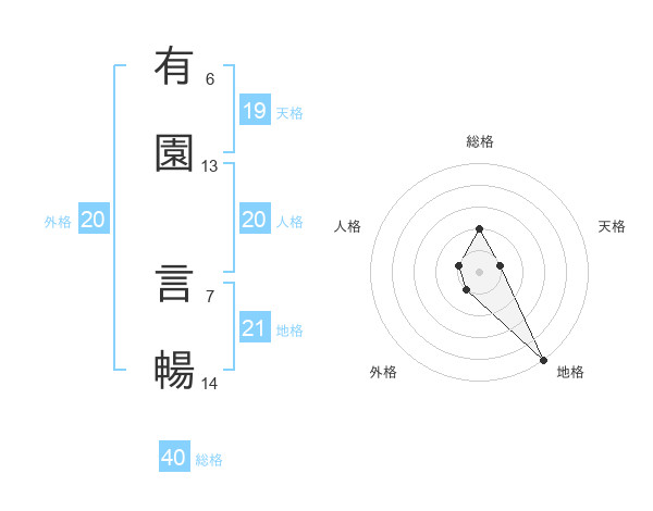 有園 言暢さんの総格は40画の2点!