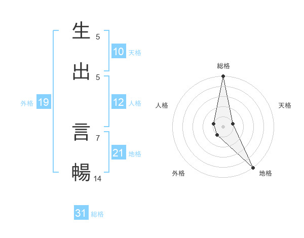 生出 言暢さんの総格は31画の5点!