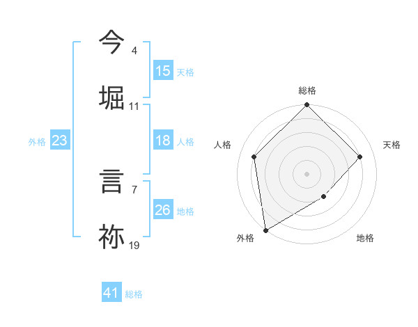 今堀 言祢さんを姓名の画数から五運を鑑定