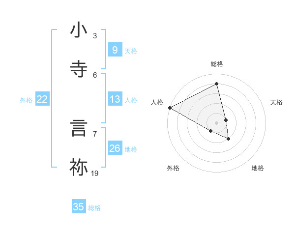 小寺 言祢さんの総格は35画の4点!