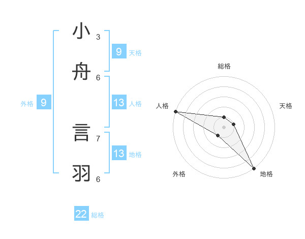 小舟 言羽さんの地格は13画の5点!