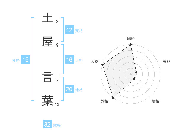 土屋 言葉さんの総格は32画の5点!