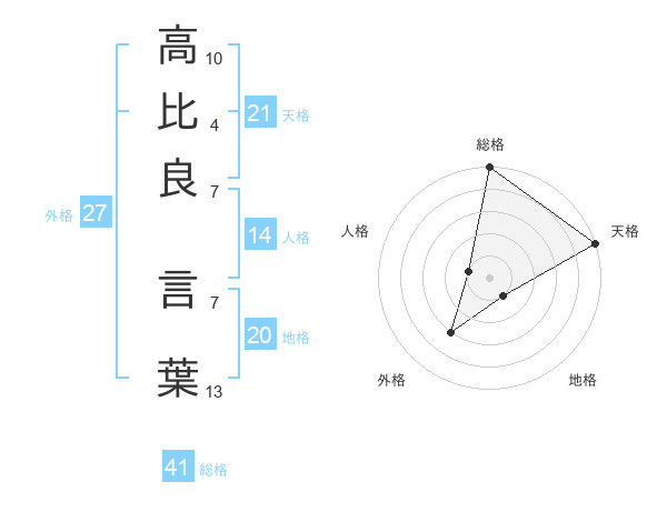 高比良 言葉さんを姓名の画数から五運を鑑定