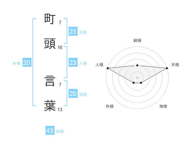 町頭 言葉さんの地格は20画の1点!