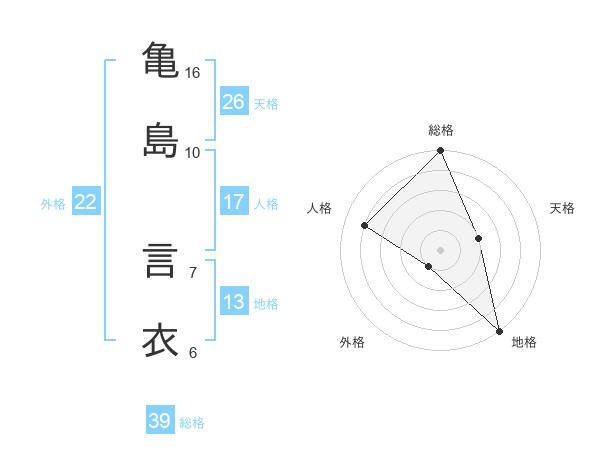亀島 言衣さんの総格は39画の5点!