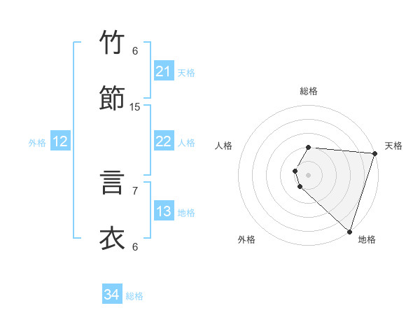 竹節 言衣さんを姓名の画数から五運を鑑定