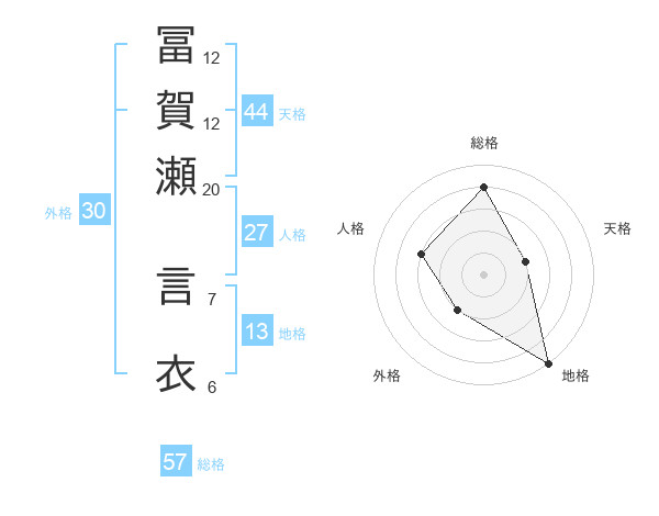 冨賀瀬 言衣さんを姓名の画数から五運を鑑定