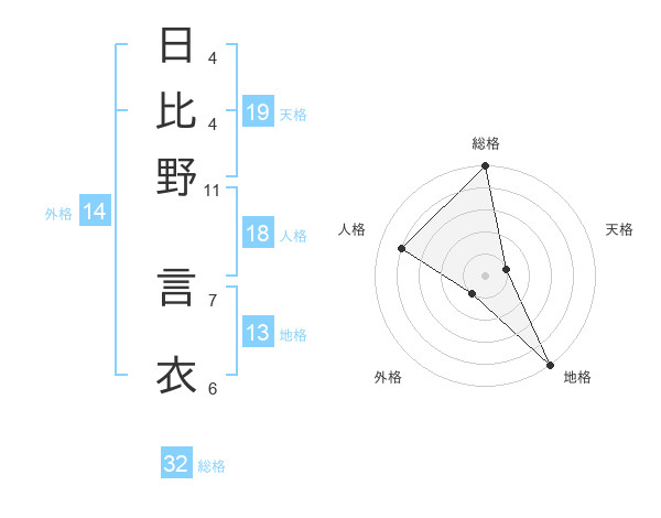 日比野 言衣さんを姓名の画数から五運を鑑定