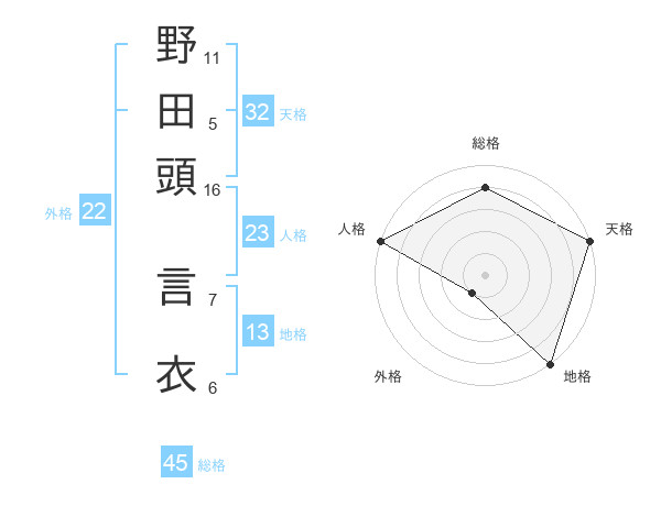 野田頭 言衣さんを姓名の画数から五運を鑑定