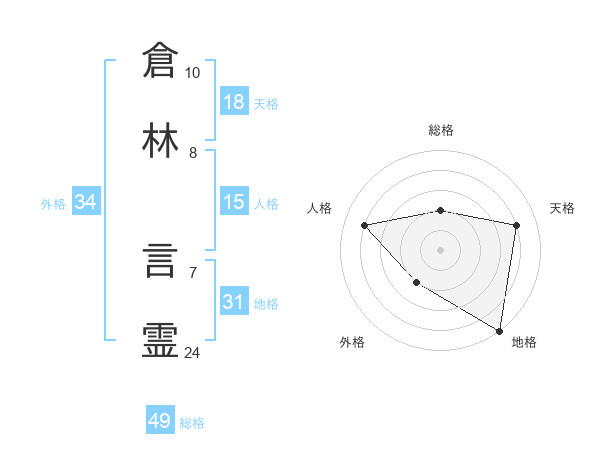 倉林 言霊さんの天格は18画の4点!