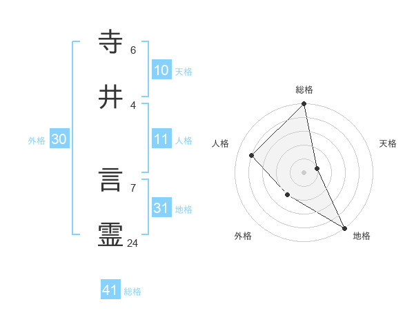 寺井 言霊さんの総格は41画の5点!