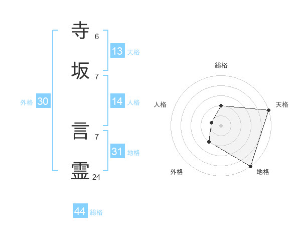 寺坂 言霊さんを姓名の画数から五運を鑑定