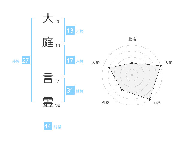 大庭 言霊さんを姓名の画数から五運を鑑定